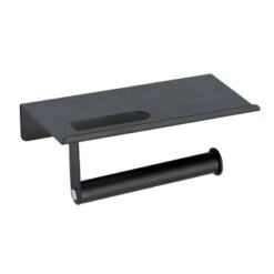Mit dem Toilettenpapierhalter mit integrierter Smartphone-Ablage finden Handy und Tablet endlich einen komfortablen und sicheren Platz im Badezimmer.Der schöne Papierhalter in Schwarz ist aus hochwertigem, mattiertem Stahl gefertigt und hält die Toilettenpapierrolle stets dekorativ griffbereit. Die praktische Ablage für Tablet, Smartphone und Co. bewahrt die teuren Geräte zuverlässig auf. Im Lieferumfang ist das Montagematerial enthalten.