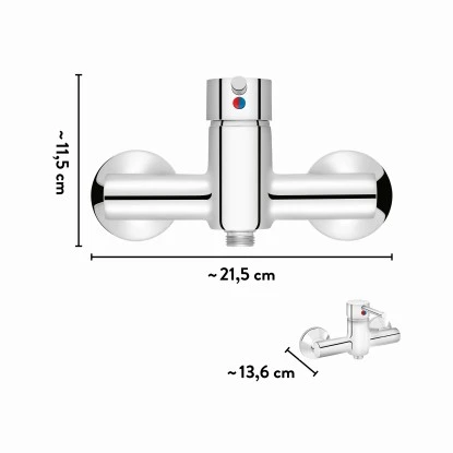 Du magst klare Linien und rechtwinklige Formen? Die baliv Duscharmatur DU-5150 begeistert mit ihren zylindrisch geformten Korpus, Hebel und Auslauf, die geradlinig und im rechten Winkel voneinander verlaufen. Dadurch hat die Badarmaturen einen klaren und edlen Look. Ein besonderer Blickfang ist der filigrane Hebel.
