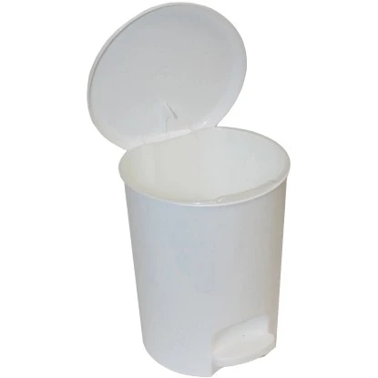 Der Kunststoff-Treteimer in der Farbe Weiß überzeugt durch einfache Handhabung. Das Fassungsvermögen dieses eleganten Kosmetikeimers beträgt 5 Liter.
