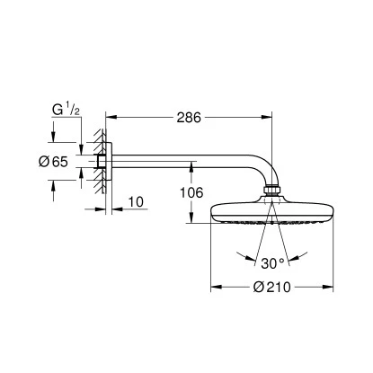 Die Kopfbrause mit großem 210 mm Ø Auslauf hat einen breiten Strahl der bei Ihnen Zuhause für besondere Duschmomente sorgt. Der Rain Strahl bietet einen angenehmen Wasserstrahl, der einem warmen Sommerregen gleicht. Durch die Ausladung des Brausearms von 286 mm reicht die Brause weit genug in die Dusche, damit Sie mehr Platz für die Körperpflege haben. Dank Grohe DreamSpray wird das Wasser gleichmäßig verteilt, so wird für ein perfektes Strahlbild gesorgt. Dabei lässt sich die Brause besonders leicht von Kalk befreien. Durch das Antikalk-System SpeedClean lassen sich Kalkablagerungen an den Düsen einfach mit dem Finger abwischen.