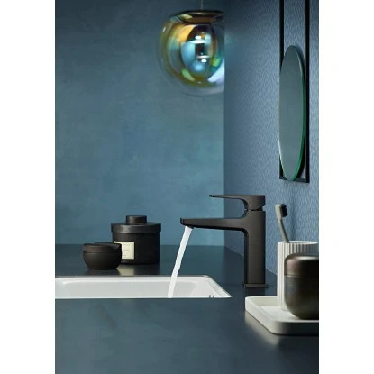 Für einen ausdrucksstarken Auftritt am Waschbecken: Design-Armatur in metallischem Schwarz-Chrom von hansgrohe. Der Einhebel-Waschtischmischer Metropol 110 mit Hebelgriff und Push-Open-Ablaufgarnitur in der Oberfläche Brushed Black Chrome beeindruckt durch sein geometrisches Design mit klarer Formensprache. Die elegante Ausstrahlung gewinnt durch die dunkle Metallicfarbe an Ausdruckskraft. Die Kombination aus edlem, gebürstetem Schwarz-Chrom, großzügigen Flächen und präziser Geometrie macht die Armatur zum optisch reizvollen Designstatement besonders im modernen Badambiente. Zusätzliches Plus: Der große Abstand zwischen Auslauf und Waschbecken bietet mehr Raum und eine komfortable Nutzung (ComfortZone 110). Für beispielsweise angenehmes und bequemes Händewaschen. Großer Bedienkomfort, sparsamer Verbrauch, vielseitiger Einsatz. Über den flächigen Hebelgriff der Armatur lassen sich Wassermenge und Temperatur schnell und einfach einstellen. Das leichtgängige Keramikmischsystem gewährleistet langanhaltende zuverlässige Funktionalität. Einfach zu reinigen: Kalk lässt sich mühelos durch leichtes Abwischen über den Silikoneinsatz am Auslauf entfernen (QuickClean) Spürbar fülligere, weichere Tropfen: Das Wasser wird automatisch mit Luft angereichert (AirPower). Spart Wasser und Geld: Die Durchflussmenge wird automatisch auf maximal 5 l/min begrenzt unabhängig vom Wasserdruck (EcoSmart). Einfache Installation: Die Armatur kann an die vorhandenen Wasseranschlüsse angeschlossen werden. Anschlussart: G 3/8-Anschlussschläuche. Push-Open-Ablaufgarnitur mit einfach zu bedienendem Druckstopfen: Der Hebel an der Rückseite entfällt für ein puristisches Armaturendesign. Für Durchlauferhitzer geeignet und daher vielseitig einsetzbar