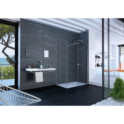 Sie träumen von der perfekten Dusche, die zu Ihren Bedürfnissen passt? Hier ist sie! Eine echte Innovation: Hüppe Xtensa pure. Sie vereint die Vorteile einer Walk-In-Dusche optimal mit denen einer Duschkabine mit Gleittürsystem: großzügiger Einstieg, hohe Transparenz und umfassenden Spritzschutz.