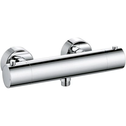 Die Brausearmatur ist in einer edlen Chrom-Optik gehalten und ist eigensicher gegen Rückfließen. Das Thermostat ist mit einem Schmutzfangsieb ausgestattet und hat ein Brauseabgang-Maß von 1/2″.