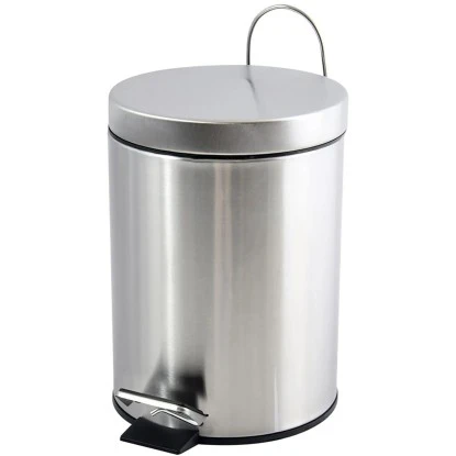 Der moderne Tret-Mülleimer aus Metall ist mit einem herausnehmbarem Kunststoffeimer ausgestattet. Das Pedal ermöglicht ein müheloses Öffnen des Eimers.