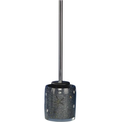 Die WC-Kombi-Bürstengarnitur Nachtmeer ist ausgestattet mit einem Kunststoffbehälter. Der Fuß ist aus Polyesterharz mit eingelegten Meeresmotiven. Material: Metall verchromt.