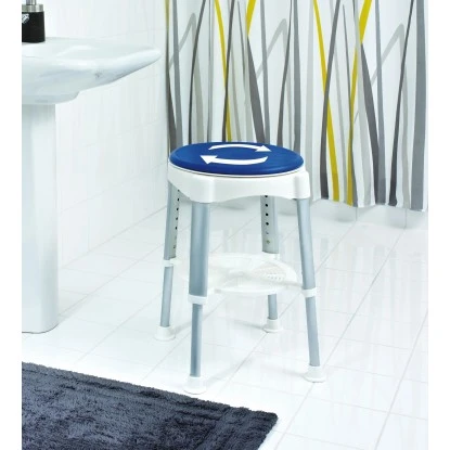 Der Ridder Badhocker ist höhenverstellbar und bietet Ihnen mit seiner um 360° drehbaren Sitzfläche Bewegungsfreiheit ohne Grenzen. Der Hocker ist ideal geeignet, um sich im Sitzen am Waschbecken zu pflegen.