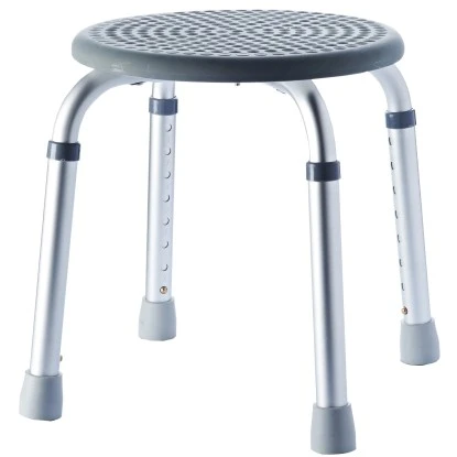Der Ridder Duschhocker ist mit einer runden Sitzfläche aus grauem Kunststoff ausgestattet. Die Sitzfläche kann in der Höhe verstellt und dadurch individuell angepasst werden.