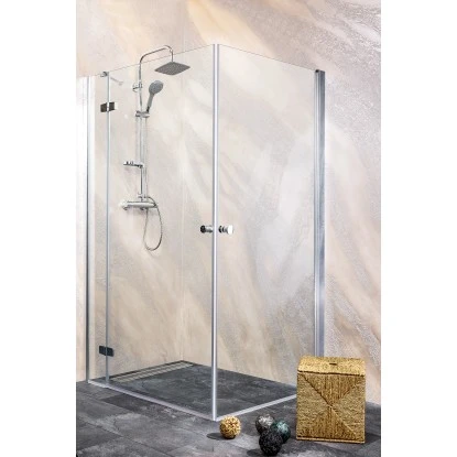 Die Sanotechnik Drehtür Brava mit reversiblem Anschlag kann in Kombination mit anderen Produkten der Sanoflex Serie ideal für Eck- oder Nischenduschen verwendet werden. Auch in kleinen Badezimmern kommt die Duschtür gut zur Geltung, da diese sich nach innen und außen öffnen lässt.