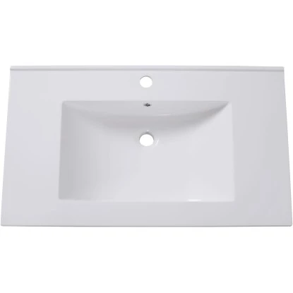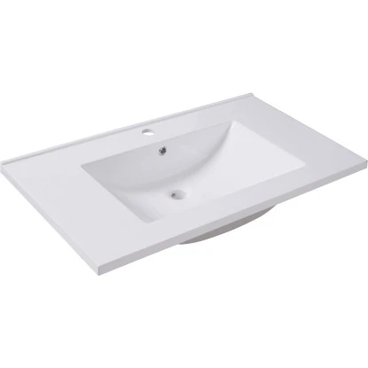Das Waschbecken überzeugt durch die pflegeleichte Oberfläche. Mit der eckigen modernen Form ist es ein Hingucker in jedem Badezimmer.