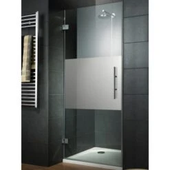 Die Drehtür für Nische besteht aus 8 mm Einscheiben-Sicherheitsglas. Die innen bündigen eckigen Scharniere sind bereits vormontiert und schließen innen bündig mit der Glasfläche ab. Die Reinigung Ihrer Duschkabine wird damit zum Kinderspiel. Durch den verdeckten Heb-Senk-Mechanismus der Scharniere hebt die Tür beim Öffnen leicht an und senkt sich beim Schließen wieder ab. Erhöhte Dichtigkeit und zuverlässiges Schließverhalten sind dadurch garantiert. Der verdeckte Heb-Senk-Mechanismus wird erst beim Bewegen der Tür bemerkbar. Das Dekorglas Dezent und der große Stabgriff verleihen dieser Drehtür einen eleganten Look.