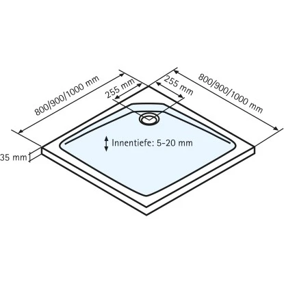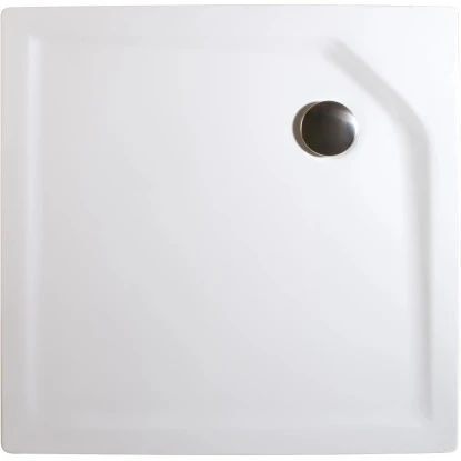 Die extraflache quadratische Duschwanne hat die Maße 100 cm x 100 cm und ist Alpinweiß.