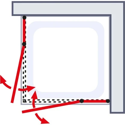 Der vierteilige Eckeinstieg der Serie Alexa Style 2.0 von Schulte besteht aus 5 mm Sicherheitsglas. Die beiden Türen öffnen nach außen. Der verdeckte Heb-Senk-Mechanismus garantiert eine erhöhte Dichtigkeit und ein zuverlässiges Schließverhalten der Türen. Die mitgelieferten Stabilisationsbügel sorgen für zusätzliche Stabilität. Dadurch erhöht sich die Produkt Höhe um 3,4 cm.
