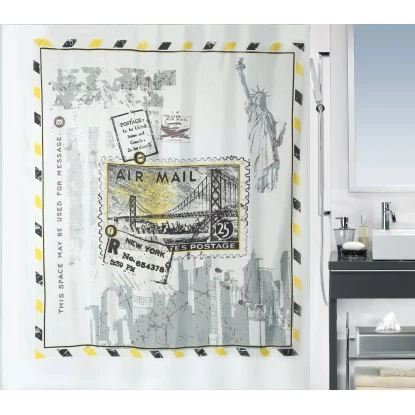 Der Spirella Duschvorhang Riverdale 180 cm x 200 cm im Airmail-Postage Look des New Yorker Stadtteils Riverdale. Vintage pur und kein bisschen altmodisch.