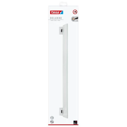 Die Tesa Bad-Artikel der Serie Deluxxe überzeugen durch das exquisite Design in Kombination mit Qualität und Funktionalität. In modernem Chrom gehalten passen sie sich jedem Badezimmer oder Gäste-WC ideal an. Noch dazu sind die praktischen Bad-Artikel rostfrei. Die Tesa Glasablage Deluxxe aus Milchglas bietet viel Platz für Ihre Badutensilien und Kosmetikartikel und macht noch dazu optisch einiges her.