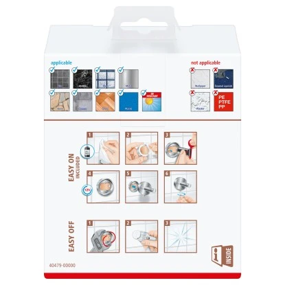 Der Artikel lässt sich ganz einfach und sauber ohne Bohren und Schrauben an der Wand befestigen. Nachdem Sie den Befestigungsadapter angebracht und mit der im Lieferumfang enthaltenen Klebmasse gefüllt haben, warten Sie 12 Stunden und können den Artikel dann dauerhaft sicher anbringen. Zum beiliegenden Befestigungsset gehören ein Befestigungsadapter, die Klebmasse sowie ein Inbus zur Fixierung. Der Artikel eignet sich zu Anbringung auf Fliesen, Metall, Naturstein, Marmor, Glas, Holz und vielen Kunststoffen. Trotz der Haltekraft von bis zu 6 kg können Sie ihn jederzeit wieder entfernen und mit einem neuen Adapter (BK20) wiederverwenden.