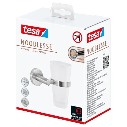 Die Tesa Bad-Artikel der Serie Nooblesse punkten durch das schlichte Design mit runden Formen. Diese Artikel sind garantiert ein Hingucker in jedem Bad oder Gäste-WC. Noch dazu sind sie garantiert rostfrei. Der Tesa Zahnputzbecher Nooblesse hält Ihre Zahnbürsten und Zahnpasta stets dekorativ griffbereit. Der Becher aus edlem Milchglas lässt sich zur einfachen Reinigung herausnehmen.