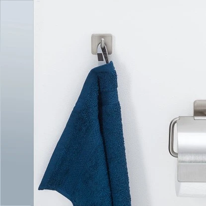 Die moderne Tiger Ausstattungsserie Onu besticht durch eine Kombination aus viereckigen Formen und runden Details. Die Artikel sind aus hochwertigem Edelstahl gefertigt und in der Oberfläche gebürstet ausgeführt. Mit diesen Artikeln sorgen Sie in jedem Bad oder Gäste-WC für einen Hingucker. Der selbstklebende Haken Onu bietet Platz für Handtücher, Kleidung, Geschirrtücher etc. von bis zu 1 kg.