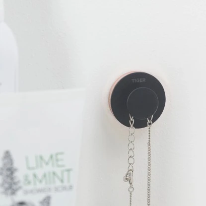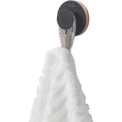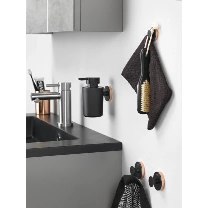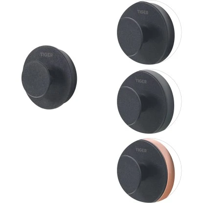 Die Serie Urban in trendigem Schwarz bietet modernes, industrielles Design. Individuellen Touch verleihen Sie den Accessoires mit den beigefügten Dekor-Ringen in Dunkelgrau oder Kupfer. Der Haken lässt sich einfach mittels der integrierten Klebefolie an der Wand befestigen.