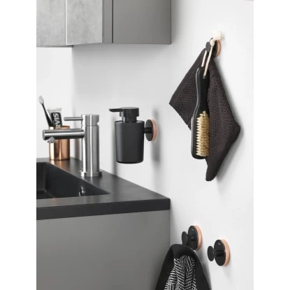 Der formschöne Toilettenrollenhalter ist schwenkbar und fügt sich stilvoll in jedes Bad ein. Die Serie Urban in trendigem Schwarz bietet modernes, industrielles Design. Individuellen Touch verleihen Sie den Accessoires mit den beigefügten Dekor-Ringen in Dunkelgrau oder Kupfer. Die Artikel lassen sich einfach mittels der mitgelieferten Edelstahl-Schrauben und Dübel an der Wand befestigen. Alternativ können Sie die Accessoires auch ohne zu Bohren mit dem separat erhältlichen Tigerfix-Befestigungsset Nr. 1 kleben.