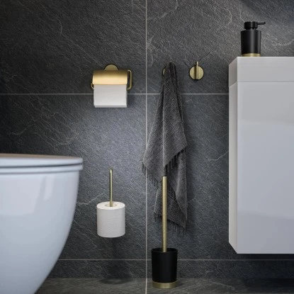 Der Tiger Tune freistehende Seifenspender verfügt über eine Oberfläche aus gebürstetem Messing mit mattschwarzen Akzenten. Der Seifenspender ist perfekt für das Badezimmer, die Toilette oder die Küche. Die Benutzung des Seifenspenders mit dem herausnehmbaren, leicht zu befüllenden Reservoir ist ganz einfach. Zusätzlich verfügt er über Plastikfüße an der Unterseite zum Schutz des Untergrundes vor Kratzern. Die Serie Tune umfasst eine breite Auswahl weiterer Accessoires für Badezimmer und Toilette, die alle wunderbar zusammenpassen. Durch das klassische Design und die trendigen Oberflächen können die Tiger Tune Accessoires einfach mit jedem Einrichtungsstil kombiniert werden. Die freistehenden und selbstklebenden Accessoires verleihen dem Badezimmer und der Toilette einen ganz besonderen Look.