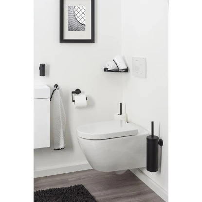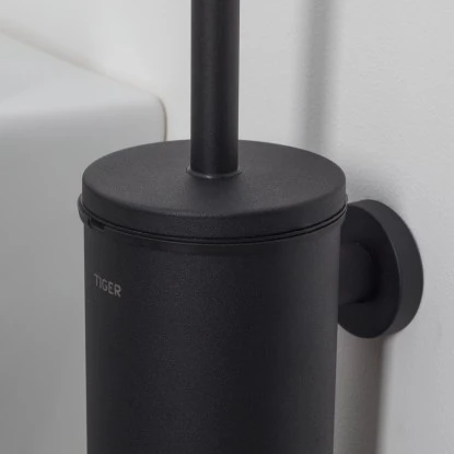 Die Tiger Ausstattungsserie Boston überzeugt durch die hochwertige Qualität in Kombination mit dem modernen Design. Die Artikel sind aus pulverbeschichtetem Edelstahl gefertigt und setzten stilvolle Akzente in jedem Bad oder Gäste-WC. Zudem sind die Artikel leicht zu reinigen. Die WC-Garnitur Boston hält die im Lieferumfang enthaltene Toilettenbürste stets griffbereit. Der Innenbehälter aus Kunststoff lässt sich zum Reinigen ganz einfach herausnehmen und der Bürstenkopf kann problemlos ausgetauscht werden. Dank des Deckels wird der schwarze Bürstenkopf im geschlossenen Zustand verdeckt und unangenehme Gerüche können nicht nach außen dringen.