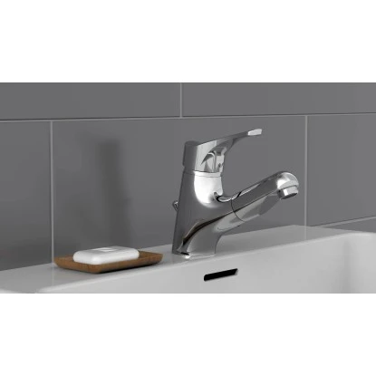 Die Waschtischarmatur Attica mit Haarbrause eignet sich ganz besonders für Badezimmer mit kleineren Platzverhältnissen. Diese Waschbeckenarmatur kann sowohl für die tägliche Wäsche als auch zum Haarewaschen im Waschbecken eingesetzt werden. Der Schlauch lässt sich bequem herausziehen und sorgt mit seinem Wasserstrahl für ein angenehmes Brausegefühl.