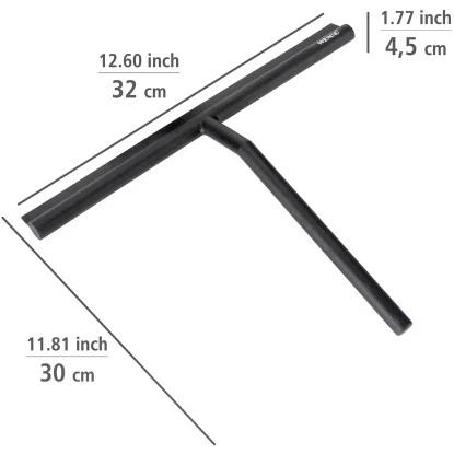 Streifenfrei und blitzschnell befreien Sie beschlagene Duschkabinen von Wasserdampf mit dem Wenko Badezimmerwischer Mola XXL mit breiter Wischfläche aus Silikon Schwarz. Der formschöne Abzieher begeistert mit seiner extra breiten Wischfläche. Wer nach der wohltuenden Dusche aus der Kabine steigt, hat oftmals keine klare Sicht. Duschwand, Spiegel und Fenster sind komplett beschlagen. Auch von den Wandfliesen läuft das Wasser herunter. Um die glatten Flächen schnell abzuziehen, eignet sich der Badezimmerwischer Mola XXL ideal. Wie der Name schon sagt, verfügt der Abzieher über eine besonders breite Wischfläche. Ganze 32 cm misst die Fläche, mit der Sie beim Abziehen eine Menge Zeit sparen und die Duschwand im Handumdrehen wieder trocken ist. Hergestellt ist der stabile Duschabzieher aus hochwertigem, rostfreien Edelstahl. Ummantelt ist er mit Silikon. So reinigt er Duschwände, große Spiegel und Wandfliesen zuverlässig und vor allem zeitsparend. Insgesamt misst der Badezimmerwischer (B x H x T): 32 cm x 30 cm x 4,5 cm. Den großen Badhelfer müssen Sie allerdings nicht umständlich verstauen oder auf dem Boden abstellen. Der Abzieher wird mit einer passenden Hängevorrichtung geliefert. Der praktische schwarze Haken aus Silikon kann einfach auf die Duschwand aufgesteckt und der Wischer platzsparend eingehängt werden. So ist er auch für die nächsten Einsätze immer schnell griffbereit. Der Badezimmerwischer Mola XXL von Wenko ist der ideale Helfer für großflächiges Abziehen. Sie suchen einen Duschabzieher für kleinere Flächen? Den Badezimmerwischer Mola gibt es auch in einer kleineren Variante mit einer Wischfläche von 21 cm.