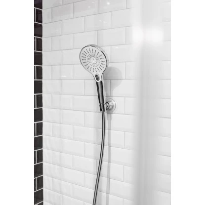 Passend zu dem hochwertigen Halter für Handbrausen finden Sie bei WENKO Duschköpfe mit verschiedenen Funktionen und Duschschläuche in unterschiedlichen Längen.