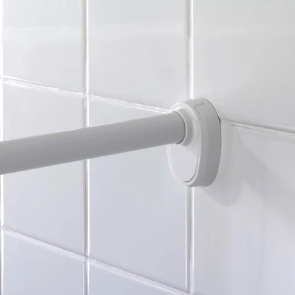 Die stabile Duschstange ist aus hochwertigem Aluminium hergestellt und gewährleistet mit einem Durchmesser von 2,5 cm Stabilität und sicheren Halt.
